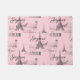 エッフェルタワー、言葉"Joyeux Noel" (フランスのMerry Christmas in)、ヴィンテージタイポグラフィのパリ、シャンパンやココアのヴィンテージラベルフランスのと、ピンクのヴィンテージの黒い輝きは、あなたのテーマのクリスマスのホームデコのための美しく興味深いクリスマスの絨毯を作るフランスの。