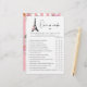 パリテーマ以上またはブライダルシャワーゲーム中