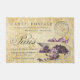 ヴィンテージフランスのはがきには、美しいタイポグラフィ「パリ」と薄紫の花が咲き誇る紫のリボンの箱が付いたアンティークの壁紙の背景が動揺してある