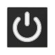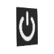 パワーシンボル(白黒)。パワーアップとパワーオンの象徴的な叙事的な金属ウォールアート。黒い背景の上に白いパワーシンボル(IEC 5009シンボル).お感じ前の部屋の力だ!