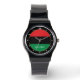 時計:パンアフリカ国旗の記号 – UNIA /赤、黒、緑の水平なトリバンド。汎アフリカ国旗 – アフロ・アメリカ国旗、黒解放の旗、UNIAの旗としても知られている。Black Lives Matter movementでよく使用される。