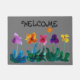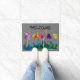 パンジーの列を持つ歓迎のドアマット。オリジナルアートバイヒーサーブランチフラワー。