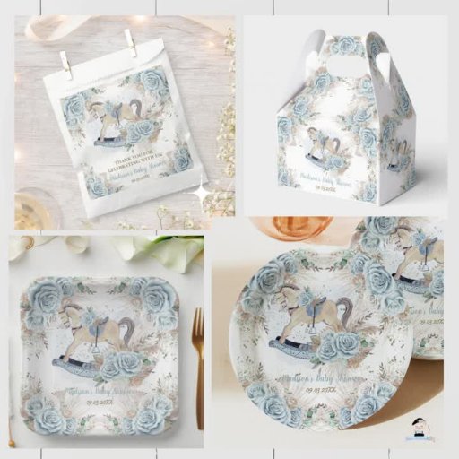 Boho Chic Pampas Grass Blue Floral Rocking Horseデザイン: The Happy Cat Studio