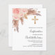 バラ金ゴールドと赤面ピンクの花模様、バラとパンパスグラスと黄金の十字架。名前と詳細のパーソナライズおよび追加1枚= 1枚の招待状を印刷したエッジからエッジ
