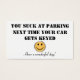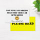これはギャグの贈り物に過ぎないが同時に何回駐車しようとし隣の人が非常に恐ろしく駐車できなくそこに駐車できなかった?まあ今は彼らに彼らがどれだけ悪い駐車するかを知らせることができる。正面には「駐車場に吸ある。次にあなたの車がキー設定される"スマイリーフェイス"素敵な一日を持って!"と。背中は明るい黄色で、「お願い」と言読われる。あなたはスマイリーフェイス以外のすべてを変えることができる。あなたの素晴らしまたは誰のためのちょうどギフトをギャグの贈り物を作る。