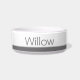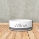 グレーパーソナライズされたとホワイトの色合いのペット皿。あなたのペットの名前はグレーの色の調整モダンの上のグレー縁どのフォントに設定される。