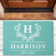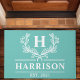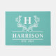 パーソナライズされたティール(緑がかった色)ローレルモノグラム ドアマット