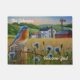 アーティストのジャンパーソナライズされたウィーナー「カントリー・ブルース」が描く水彩画Doormatは、田舎の風景を一望できる早朝の夏の景色を楽しめる。咲くトウモロコシの花々の間の風化したフェンスの柱に雄の東ブルーバードが覆われている。白い農家と小屋と古い風車が遠くにいる。この作品は、自然、国、鳥の恋人を喜ばせるだろう!