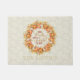 秋のカボチャのリースに囲まれた手書きのフォントで与え感謝してい、"感謝のハートと"とドアマットにあなたの家族の名前を追加離れ。背景は葉が微妙でどんぐりの模様がある。