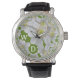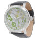 パーソナライズされた白エレガント花アートオリーブグリーン 腕時計