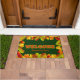 このデザインの背景の緑を任意の色に変更。明るい色の縁ど紅葉は、ウェルカムドアマットの端。ウェルカムは、黄色の深いオレンジ縁どで満たされ、次に緑で満たされている。必要に応じてパーソナライズすもしる – またはパーソナライズして文字を削除しない。