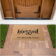 doormat賛美は、黒のスクリプトフォントとパーソナライズされた家族の名前を備えている。