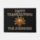 パーソナライズで幸せな感謝祭のおもしろいな七面鳥のプリントのドア・マット。 鳥の漫画および姓のカスタムな玄関マット。 あなたの家のためのおもしろいの休日のパーティの供給、装飾および付属品。 ポーチのためのかわいい歓迎された敷物、エントランスホール等は家族の姓およびカスタムの挨拶と個人化なります。 小さいおよび大型で利用できるディナー・パーティ、ホームパーティ等のためのおもしろいな項目。