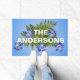 このはっきりしたで、モダンな玄関マットとのスタイルのあなたの家への歓迎される客。 このドアマットは白い文字のあなた自身の名前または他のメッセージが付いているカナダの青い鳩の花の落ち着いた青い背景そして写真を特色にします。 容易にこのドア・マットにあなたの名前を加えるのにテンプレート分野を使用して下さい。 これは素晴らしい引っ越し祝いパーティーのギフトかウェディングシャワーのギフトを作ります。