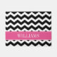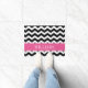 カスタムなシェブロンパターンドア・マット。 シックで、モダンなデザインは黒く、白ピンクです。 容易にあなたの姓と個人化して下さい。