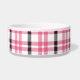 この陶磁器のドッグフードボールは背景でスタイリッシュで黒く、ピンク白い格子縞パターンを備えています。 中間では、ピンクで書かれるあなたの小犬の容易にカスタマイズ名前の大きく白い骨があります。