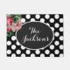 パーソナライズな花柄および黒い水玉模様の玄関マット ドアマット