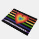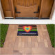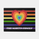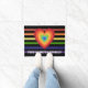 明るい虹のストライプな、レトロのスタイルのハートの名前入りな玄関マットの新婚者およびヒッピーのためのかわいい引っ越し祝いパーティーのギフト。 レトロのスタイル、白いレタリングの底のカスタムな姓のパーソナライズな、歓迎された玄関マット。 レトロのスタイル、虹はハートを着色します。 背景は黒の明るく、多彩な虹のストライプなパターンです。 望めばまたはレタリングのスタイルはおよび/または着色します変更の黒い背景色。 私達にZazzle.com/angela65*の私達の店でより多くの虹のストライプな装飾があります。