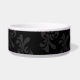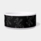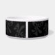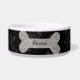 この陶磁器のドッグフードボールは背景で黒いおよび灰色のダマスク織パターンを備えています。 中間では、黒で書かれるあなたの小犬の容易にカスタマイズ名前の大きいきらめく銀製の骨があります。