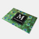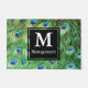 はっきりしたで、鮮やかで、モダンな孔雀は白いモノグラムの手紙および完全な姓の装飾的で黒い正方形そしてあなたの選択のティール(緑がかった色)、青、青銅および緑の色相で羽をつけます。