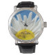 パーソナライズ名時計イエローホワイトデイジー花 腕時計