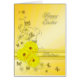 渦巻く背景の上に黄色いデイジーの花を持つ豪華な鮮やかイースターカード。