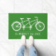 白いタンデムバイクと単語で印刷された素敵な緑のdoormatパーフェクトバランス。