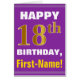 このシンプルの誕生日をテーマにしたグリーティングカードデザインは、紫色の背景の文字にフロントに「HAPPY 18誕生日、ファーストネーム!」のような暖かい誕生日の願いをはっきりした特徴としている。誕生日の番号はフェイク/模造金ゴールドのような着色の外観を持つ。正面の名前は以下の通りカスタマイズだ。内部には可能な誕生日メッセージがパーソナライズされたある。このようなグリーティングカードは、18歳の誕生日を迎える人に誕生日の願いを伝えるおもしろい祝の手段である可能性がある。[~Z0000277]