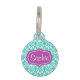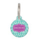 パープルエレガントおよびターコイズダマスク模様 ペット ネームタグ