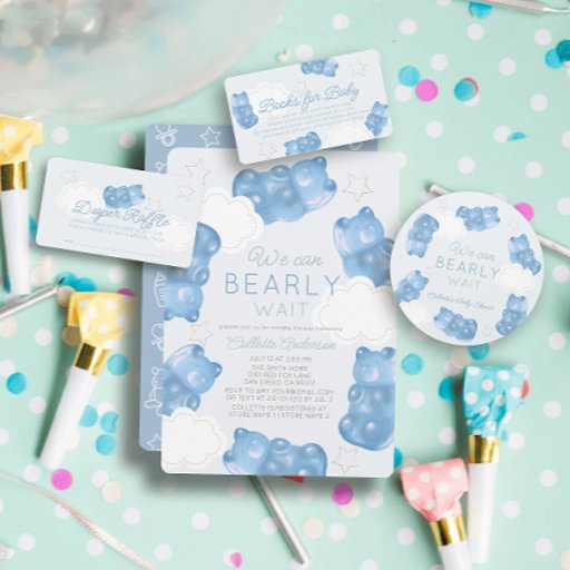 ラベンダー紫色のグミベア、雲、星を持つラベンダー紫色の背景を備えた可愛いジェンダー中立の赤ちゃんシャワー。お客様のニーズに合わせてカスタマイズあなたは私の店でマッチする製品を見つけることができる。