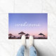 パープルサンセットカリフォルニアビーチウェルカムスクリプトはっきりした ドアマット