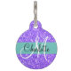 パープルティール(緑がかった色)きらめくグリッターモノグラムの ペット ネームタグ