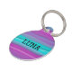 これは紫かわいらしとティール(緑がかった色)の水の色のペットIDストライプラベルである。ペットの名前と情報を背中に加えるだけ。