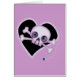 ネオ飾ンサインのように、この紫のスカルはネオン紫で縁取られた黒いハートの上に置かれる。スカルは眼球であるカラフルパターンの小さなハートを有し、大きなハートはプルチェーンでアクセントされている。