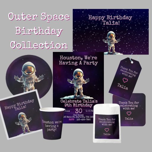 パープルピンクアウタースペース誕生日招待状 招待状