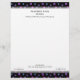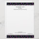 白黒エレガントプロフェッショナルペットサロンビジネスレターヘッドは紫、ピンク、青の前足のプリントを特徴とする。ペットサロンやペットトリマーに最適。