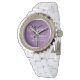 紫色の背景と文字にバレリーナのダンサーのシルエットを持つ女性の腕時計「ダンスは魂の隠された言語である」。 ダンサーやダンスの先生に最適な贈り物。