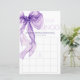 紫色の弓の水の色のベビー開花赤ちゃんシャワービンゴゲームカード紫色の弓ビンゴゲームカード