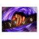 ブラックホールのように渦巻く紫の渦に入り吸ながらギターネックに手を握るデジサイケデリックタル画像。