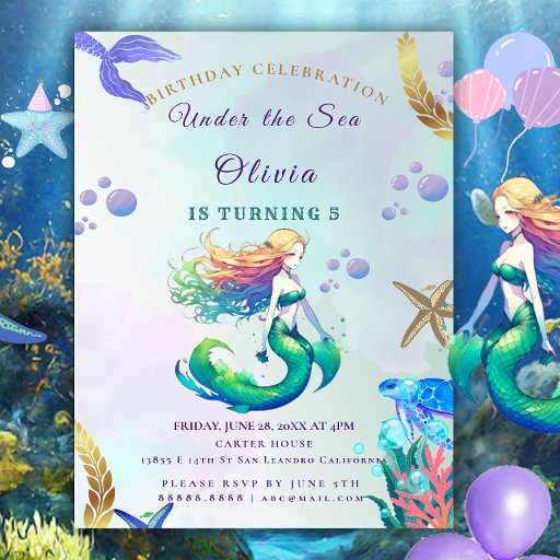 海の下の紫の人魚と海の生き物。「この魅惑的な紫と金ゴールドの人魚の誕生日キャップで水中のお祝いに参加しなさい。美しい人魚の尾と海のシお洒落ーンは、人魚の特別な日にぴったりだ。
