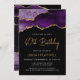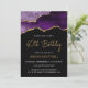 この40歳エレガントの誕生日パーティの招待状は、金ゴールドグリッターのハイライトと紫の色合いのアゲイトの水彩画フェイク像を特徴とする。「40歳の誕生日」という言葉は金ゴールド色の手書き文字にモダン現れる。カスタマイズ金ゴールド色の文字で詳細の名を冠し、黒い背景に白いを描く。反対側に紫色と金ゴールドアガートのデザインが表示される。