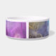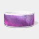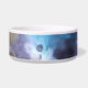 この鮮やかな紫と青のネビュラと星がデザインされた犬用ボウルに、あなたの犬の名前と電話番号を追加できます
