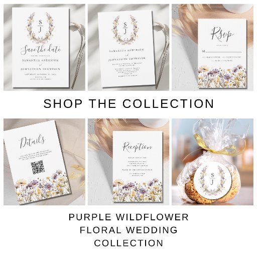 パープル ワイルドフラワー ウェディング フラット セーブ ザ デート カード
