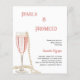 真珠モダンとプスタイリッシュロセッコのブライダルシャワーへの華やかな招待。ピンクの泡と真珠のガラスの白い背景。名前は手書文字のスタイルスモダンクリプト付き。カスタマイズしてパーティー詳細を追加する。1枚= 1枚の招待状を印刷したエッジからエッジ