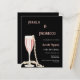 真珠モダンとプロセスタイリッシュコの誕生日パーティー(任意の年齢)のための華やかな招待状ピンクの泡と真珠とガラスと黒い背景。名前は手書文字のスタイルスモダンクリプト付き。カスタマイズしてパーティー詳細を追加する。1枚= 1枚の招待状を印刷したエッジからエッジ