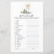 この"ブライダルワードスクランブル"ゲームエレガントカードでブライダルシャワーに軽快なおもしろいを追加する。シャンパンスタイリッシュガラスとグラフェインフローラデザインを搭載し、時間とレースで結婚は関連する言葉を奪い合うことに挑戦する。ゲストを楽しませたり、楽しい思い出を作るのに最適。お客様のブライダルシャワーに合わせて完全にカスタマイズ可能