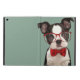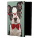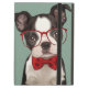 ヒップスターのスタイルのボストンテリアの子犬の青い背景の身に着けている目ガラスそしてシックで赤いちょうネクタイのかわいいイラストレーション。 Maryline Cazenave著設計されている。