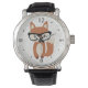 かわいいベビーキツネの漫画グラフィックの動物カバの眼鏡を顔に乗せて愛らしい。トレンディーとおもしろいの赤みを帯びた茶色のオレンジ色のキツネがプイッ学クの尾で座り、眼鏡で読は彼の眼鏡を使う。