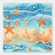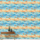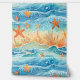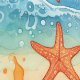 海のヒトデ、海、波、水の海の生命をテーマにした青とオレンジのパターン。