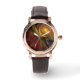 ヒマワリフローラモダン抽象芸術アートパターンパーフェクトスクエアブラウンレザーウォッチ